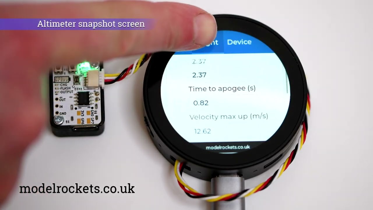Het Snapshot-scherm voor de Mercury V1-hoogtemeter.